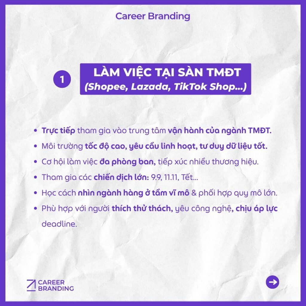 Cùng Career Branding khám phá 3 hướng đi phổ biến nhất mà sinh viên TMĐT thường theo đuổi – để bạn có thể tìm ra con đường phù hợp với mình nhất nhé!